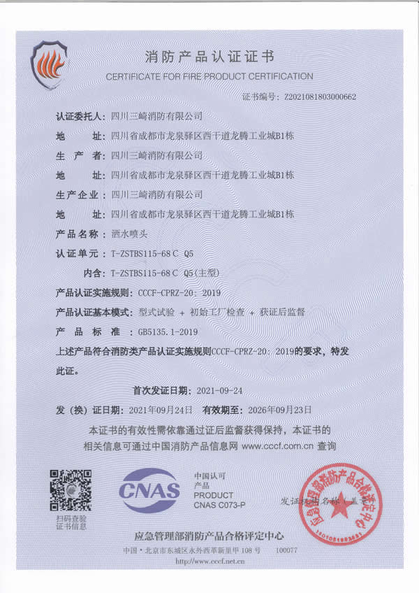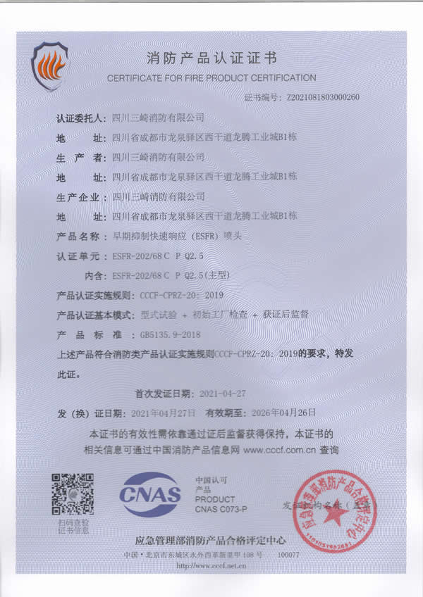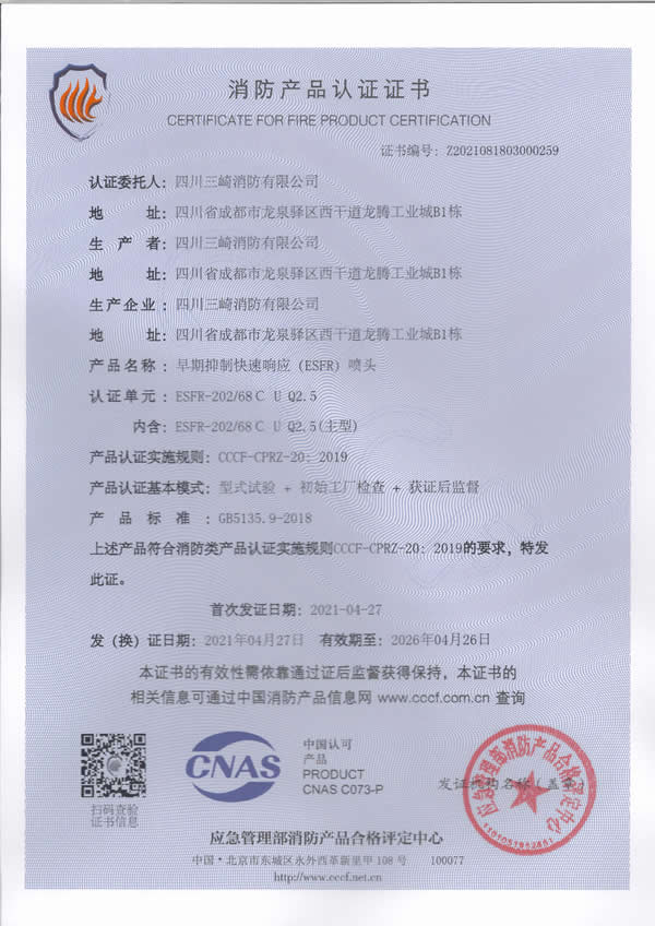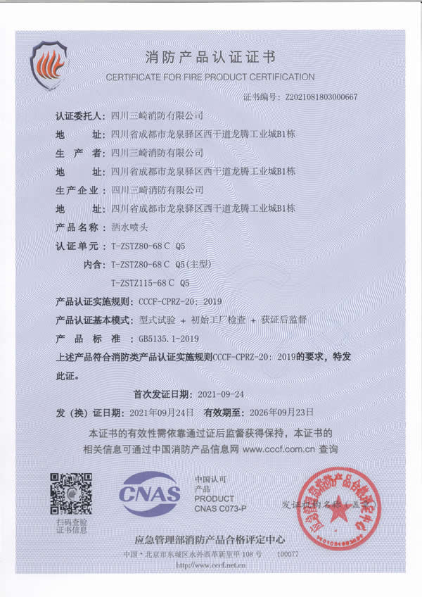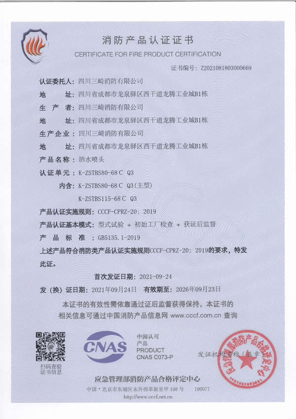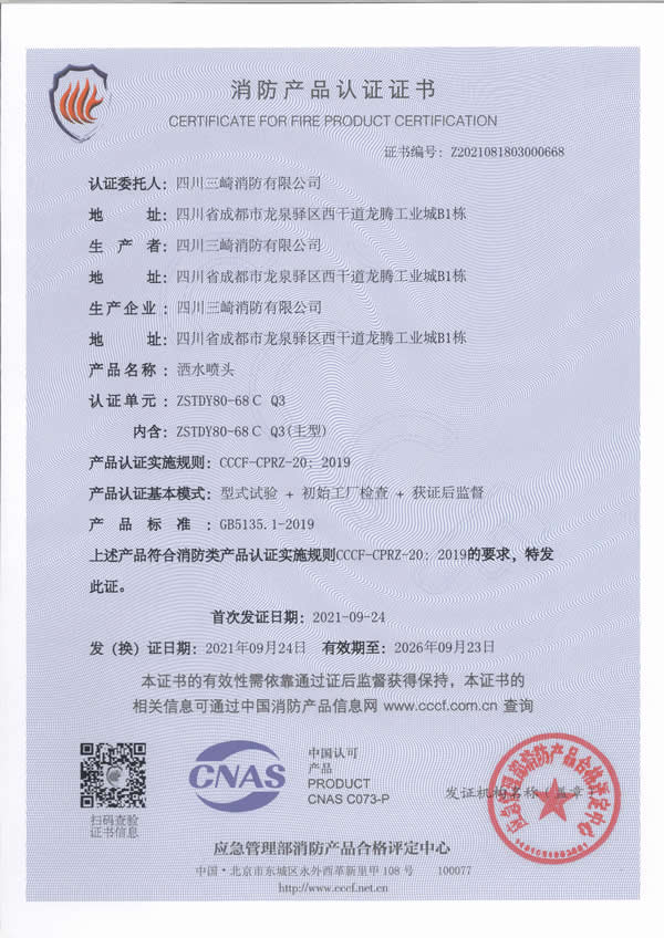 Sichuan Sanqi Fire Protection Co., Ltd. is a wholly foreign-owned enterprise established in Chinese Mainland by Taiwan Sanqi Industrial Co., Ltd. Its parent company, Taiwan Sanqi Industrial Co., Ltd., is one of the major fire protection enterprises in Taiwan, with a long professional history and formal membership in the National Fire Protection Association (NFPA). Its product brand, 3H Hengjiu, is defined by high quality, high efficiency, and high technology and enjoys a good reputation.