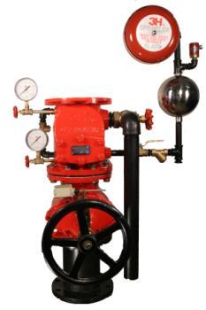 湿式报警阀装置是由报警阀、延迟器、水力警铃等组成。该装置与其它部件(如压力开关、水流指示器、喷头等)组成的湿式报警系统是一种通用的固定湿式灭火系统。该系统长期处于准工作状态,管网内充满了压力水,当保护区域内某处发生火灾时,环境温度升高,喷头的温度敏感元件(玻璃球)破裂,密封组件脱落,自动启动系统,将水直接喷向火灾发生区域,并发出报警信号,以达到报警、控制火灾、灭火的目的。